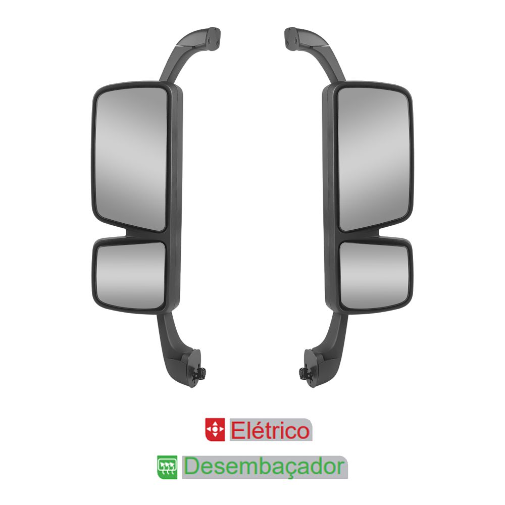 Par Espelho Retrovisor MB Actros 2016 até 2020 - Convexo - Com Desembaçador - Elétrico - Lado Esquerdo e Lado Direito (Capa Cinza)