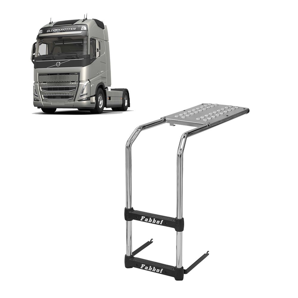 Estribo de Plataforma Volvo FH 2015 até 2021 - Fixação Tanque Arla 90 Litros (Tanque Arla 390 x 670) - Cromado - 2 Degraus