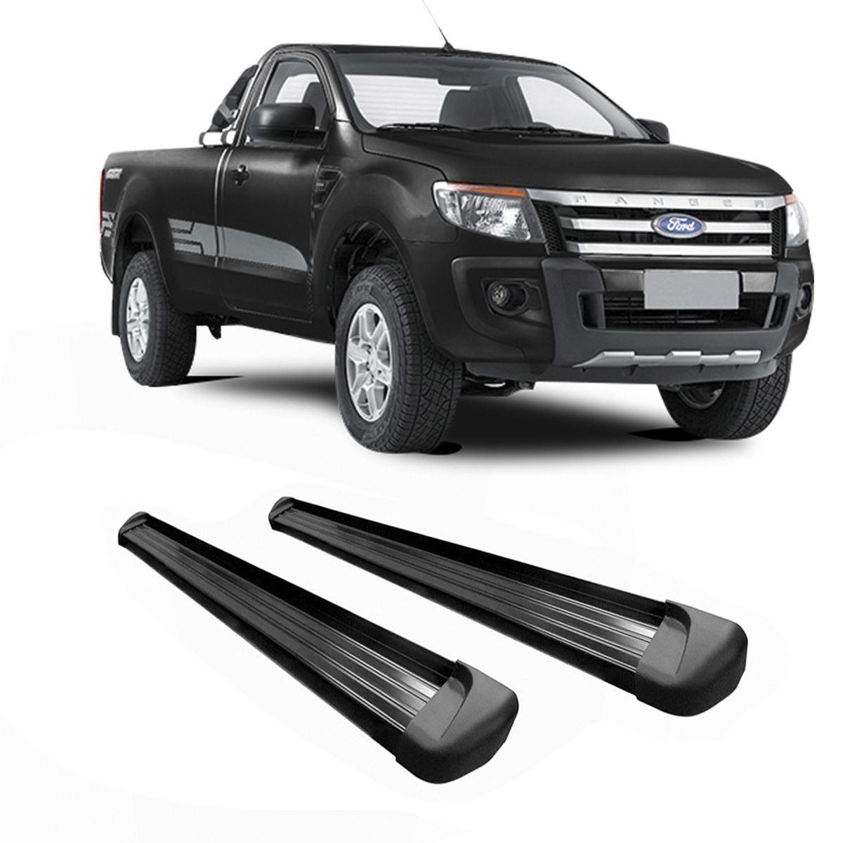 Par de estribo para Ranger 2013 em diante Cabine Simples Plataforma Alumínio Preto.