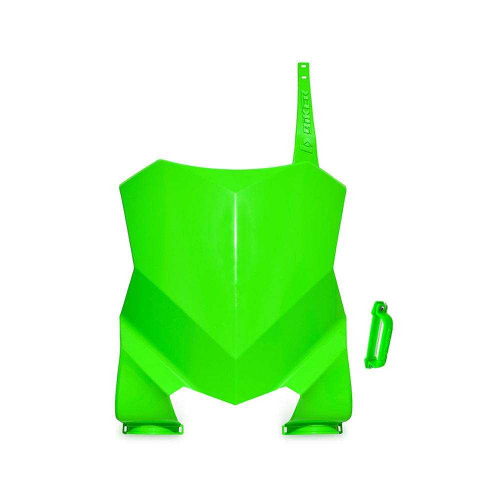 Produzido em polímero (plástico) de alta flexibilidade e resistência. Os Number Plate F1RST KAWASAKI foi projetado com encaixe perfeito na motocicleta. Produto com rápida e simples instalação. Um novo conceito de produto. Fixação através de abraçadeiras plásticas junto as bengalas da motocicleta. Maior exposição do número (novo design acabamento). Passa-cabo (guia do flexível do freio) acompanha o produto.